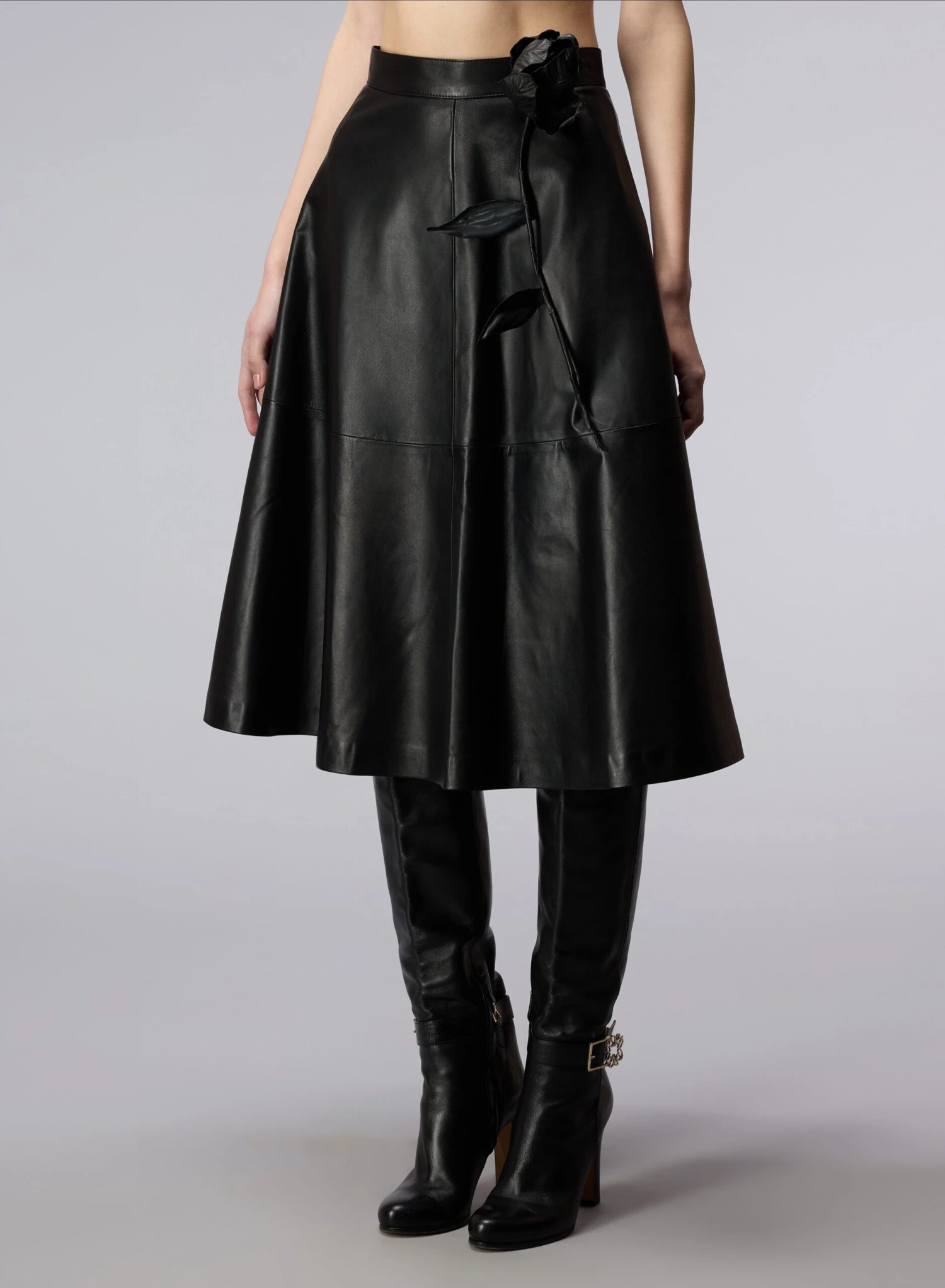 3D Embellished Leather Skirt