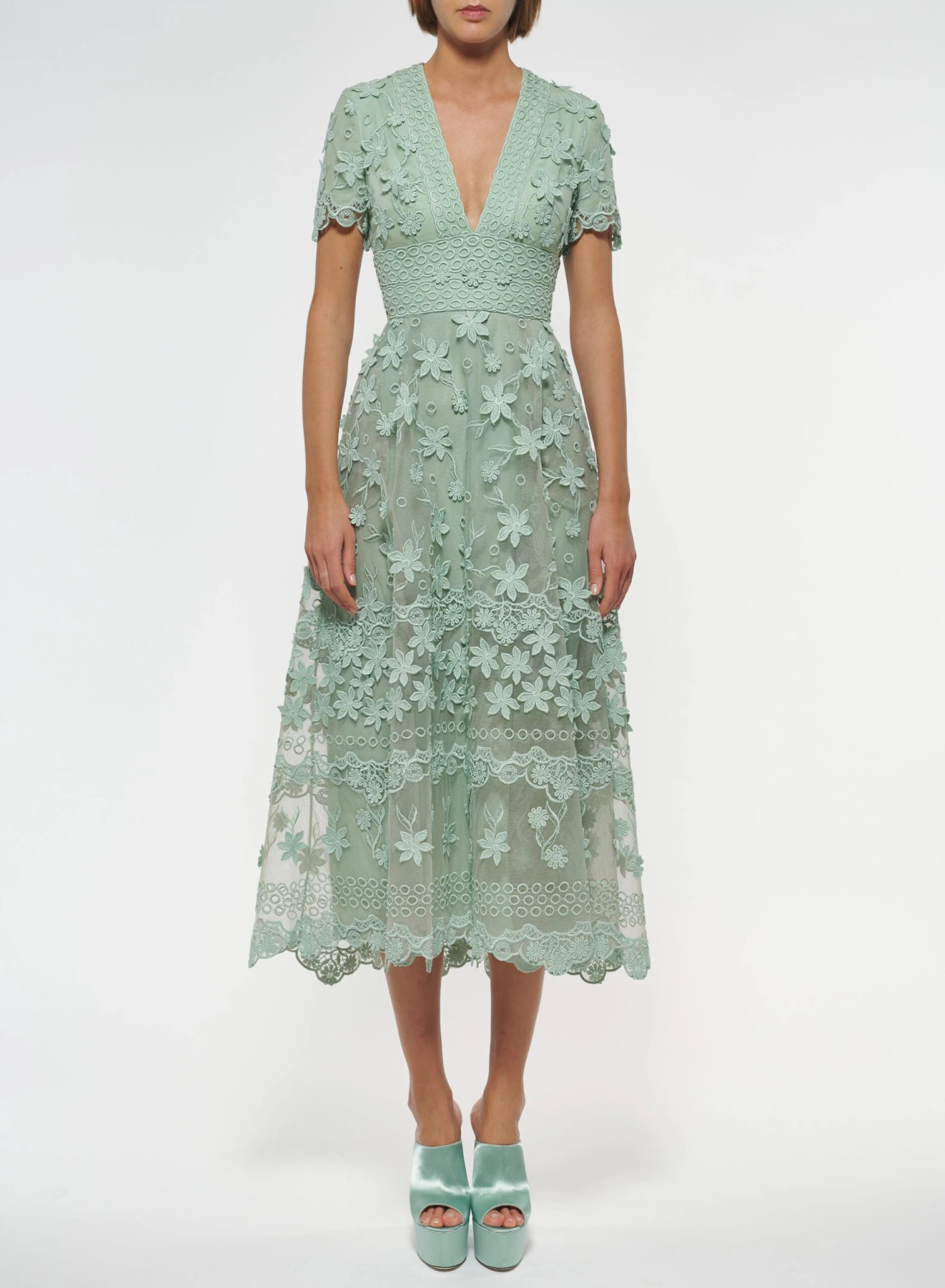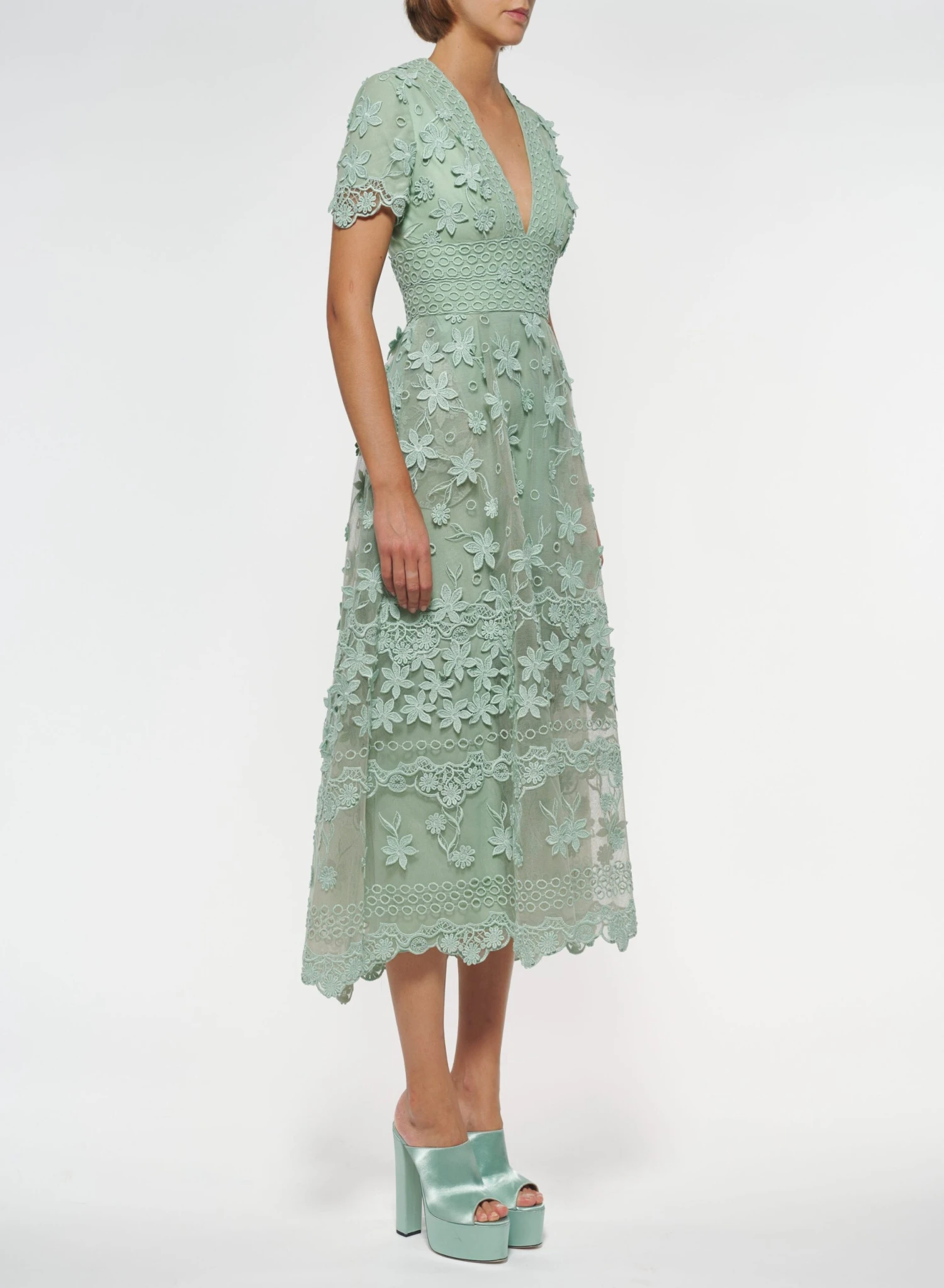 3D Floral Embroidered Midi Dress