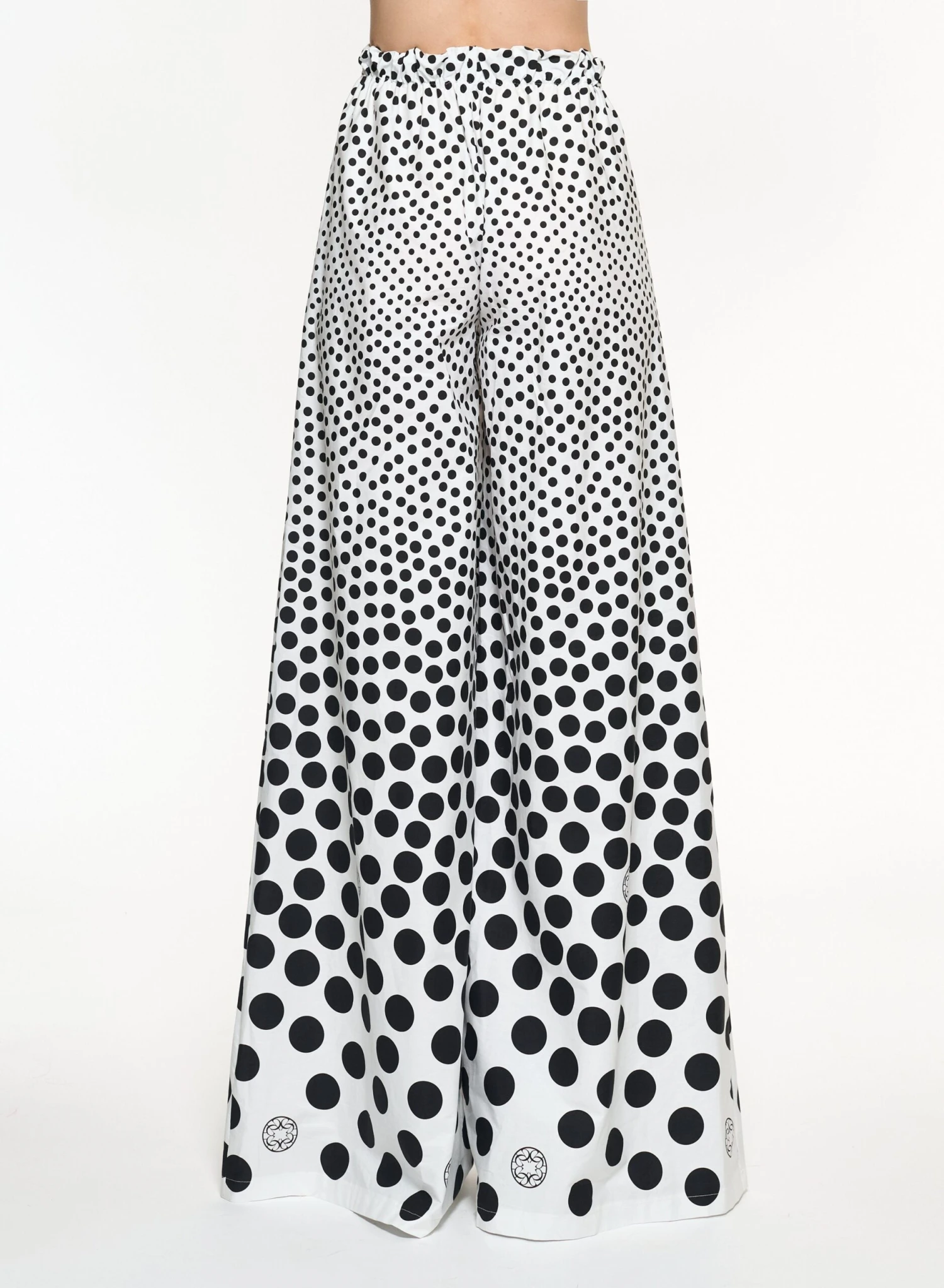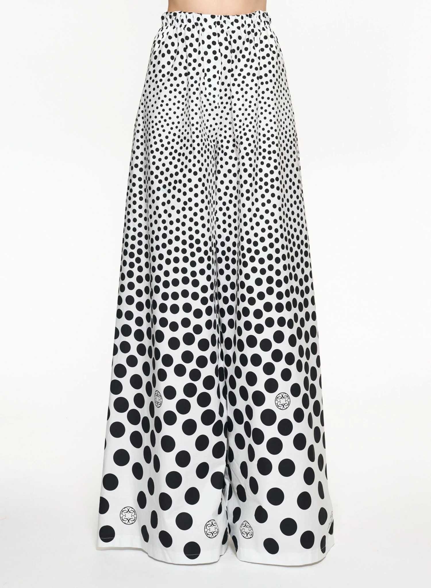 A dégradé of black polka dots and ELIE SAAB monograms punctuate these ever-flowing wide-legged pants. Pair with the matching top for a complete casual-chic look.